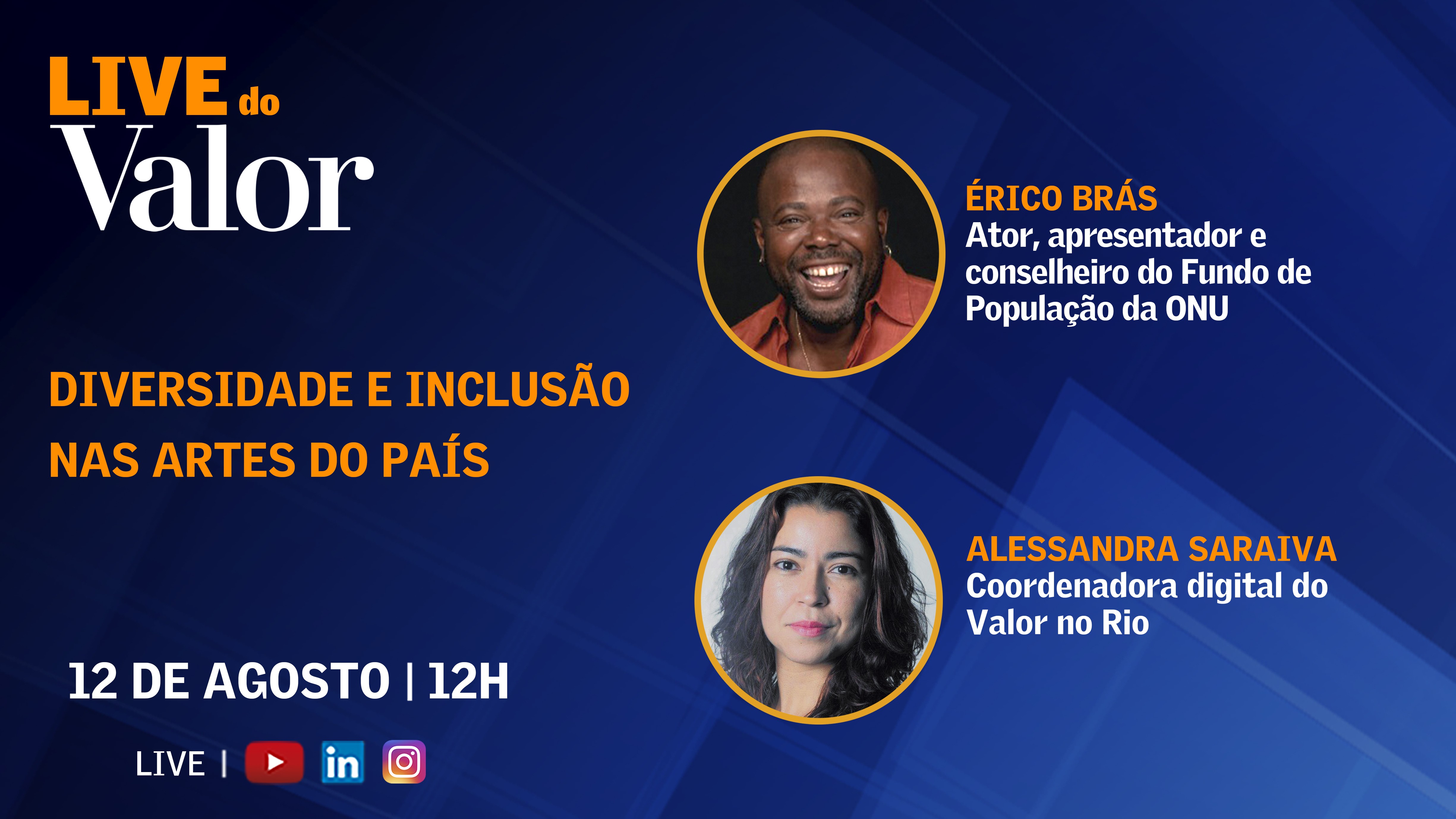 Érico Brás, ator de teatro e de televisão e futuro participante da próxima novela das seis da TV Globo, é o entrevistado desta sexta-feira, dia 12 de agosto, às 12h, na Live do Valor. A entrevista será conduzida pela jornalista Alessandra Saraiva, coordenadora digital do Valor no Rio, e transmitida pelo site e pelas páginas do Valor no YouTube, LinkedIn e Instagram.
