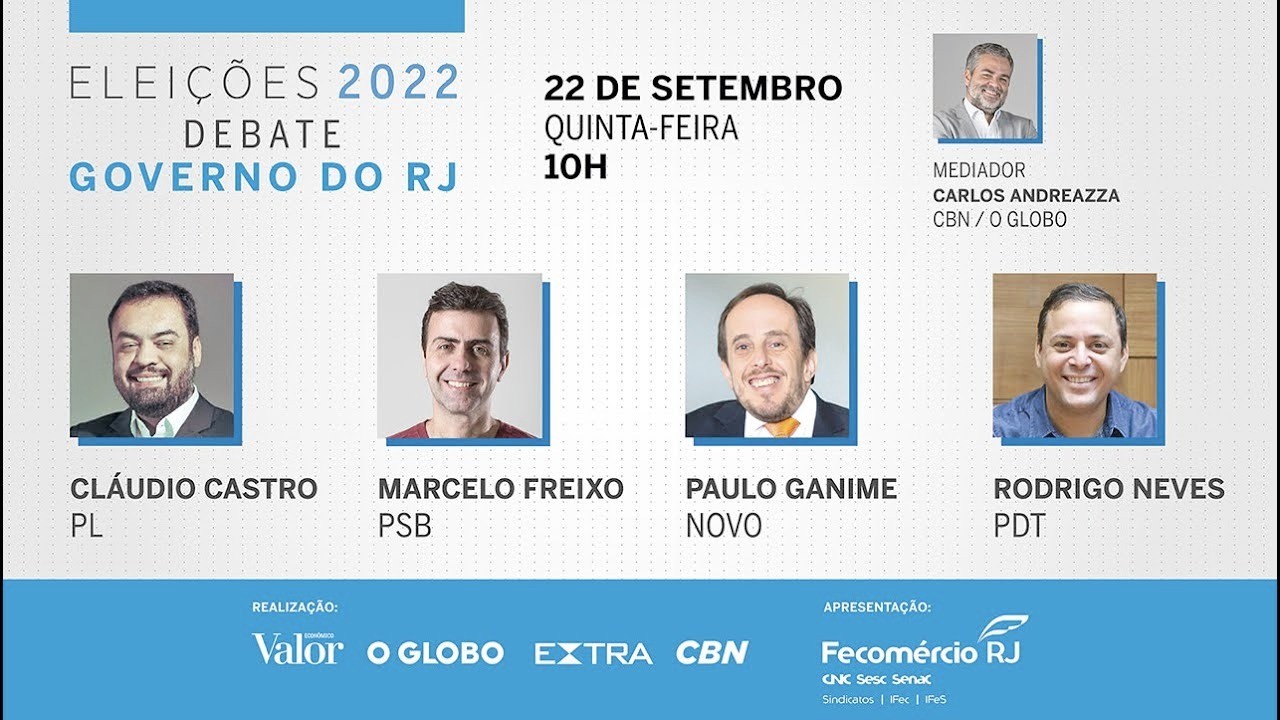 O Valor, em parceria com a rádio CBN e os jornais “O Globo” e “Extra”, promove nesta quinta, dia 22, a partir das 10h, debate com os candidatos ao governo do Rio de Janeiro. Estarão no evento, apoiado pela Fecomércio RJ, o atual governador, Cláudio Castro (PL), o deputado federal Marcelo Freixo (PSB), o ex-prefeito de Niterói Rodrigo Neves (PDT) e o deputado federal Paulo Ganime (Novo). Matéria exclusiva para assinantes. Para ter acesso completo, acesse o link da matéria e faça o seu cadastro.
