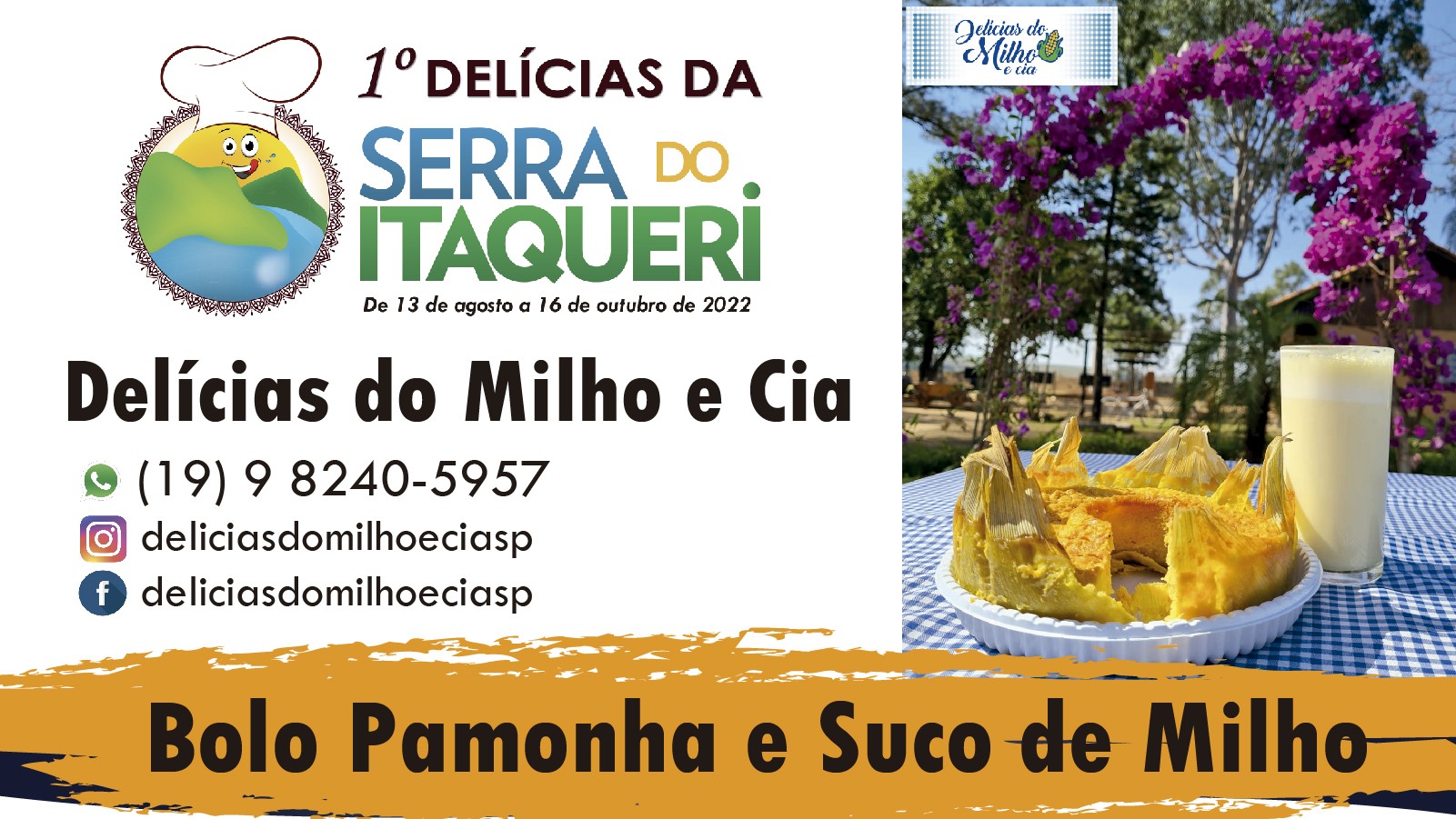 Ao adquirir o Suco de Milho e o Bolo Pamonha, você irá receber o Guia Impresso do 1º Delícias da Serra do Itaqueri e o carimbo na página do prêmio de sua preferência, que são: Day Use da Cassorova, Saltão ou Recanto das Cachoeiras.