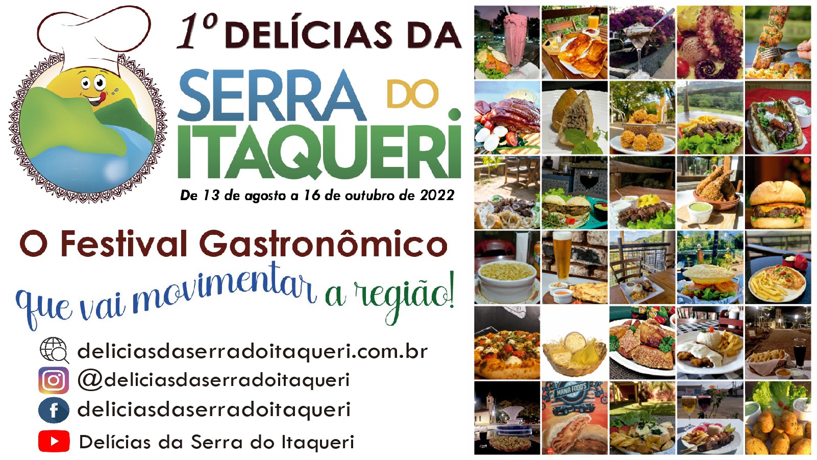 Com o objetivo de atrair a atenção do público para a Região Turística, o Festival Gastronômico Delícias da Serra do Itaqueri apresenta em sua 1° edição uma variedade de sabores da nossa região, que poderão ser apreciados em 61 estabelecimentos participantes, nos 14 municípios que compõem a Região Turística Serra do Itaqueri, de 13 de agosto a 16 de outubro de 2022.