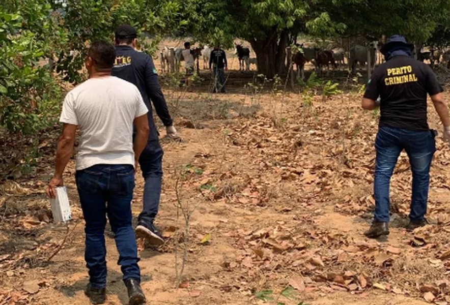 Peritos no local onde Benedito Cardoso dos Santos foi assassinado