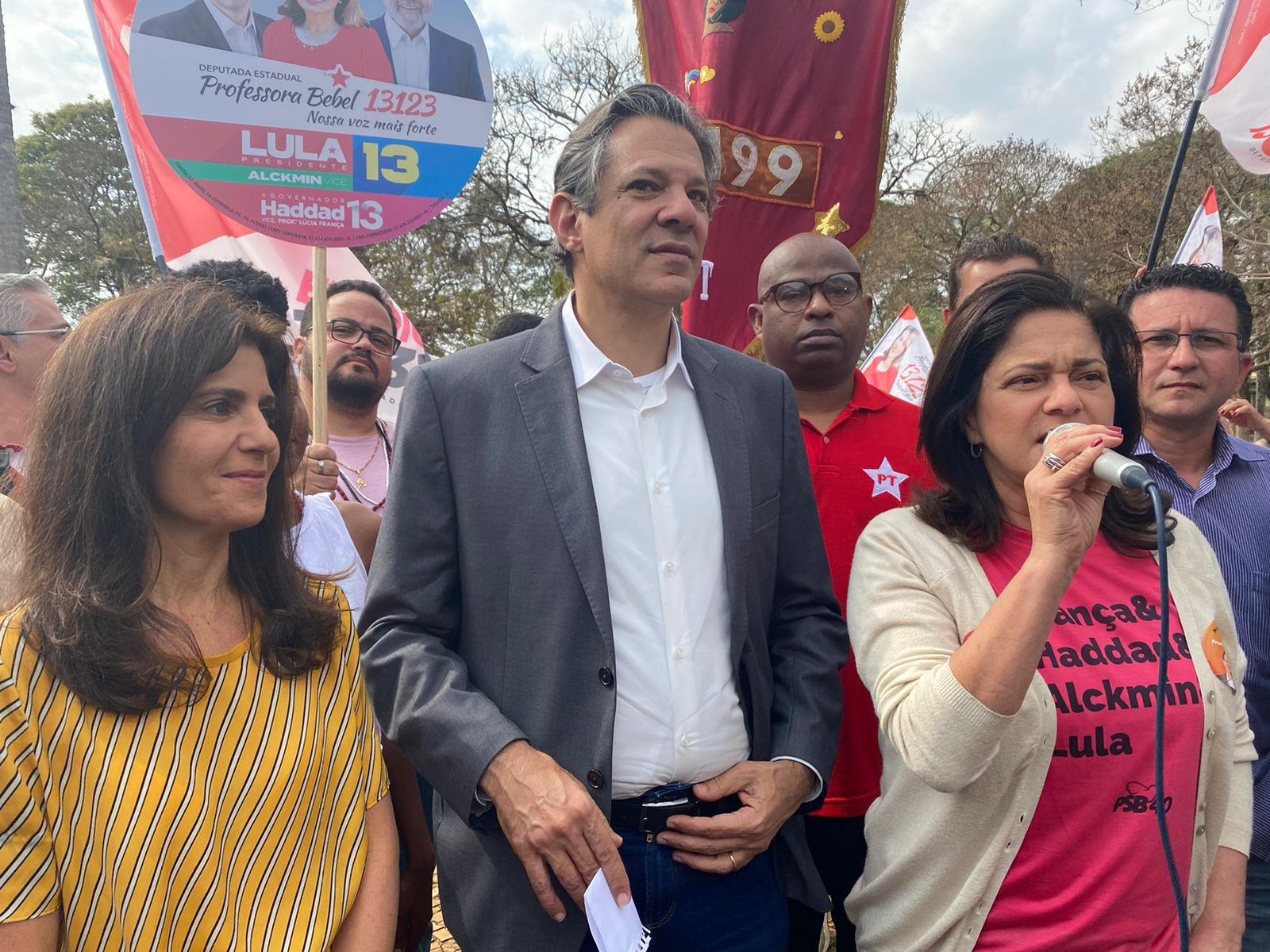 Fernando Haddad, candidato do PT ao governo de São Paulo, participou de uma agenda de campanha no campus da Universidade Estadual Paulista (Unesp) de Rio Claro (SP), na manhã desta quinta-feira (8). Márcio França (PSB), que concorre ao senado, também esteve na cidade.