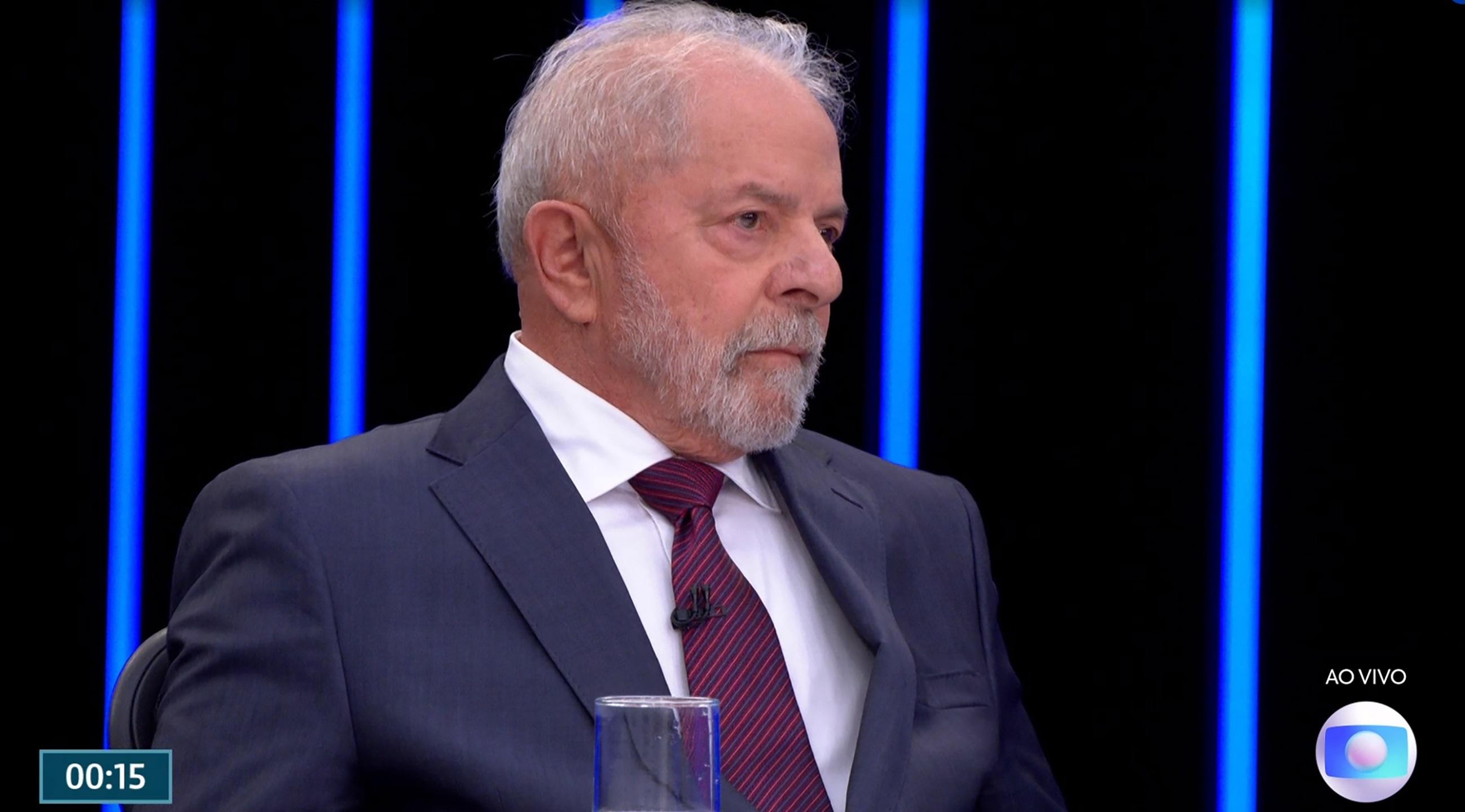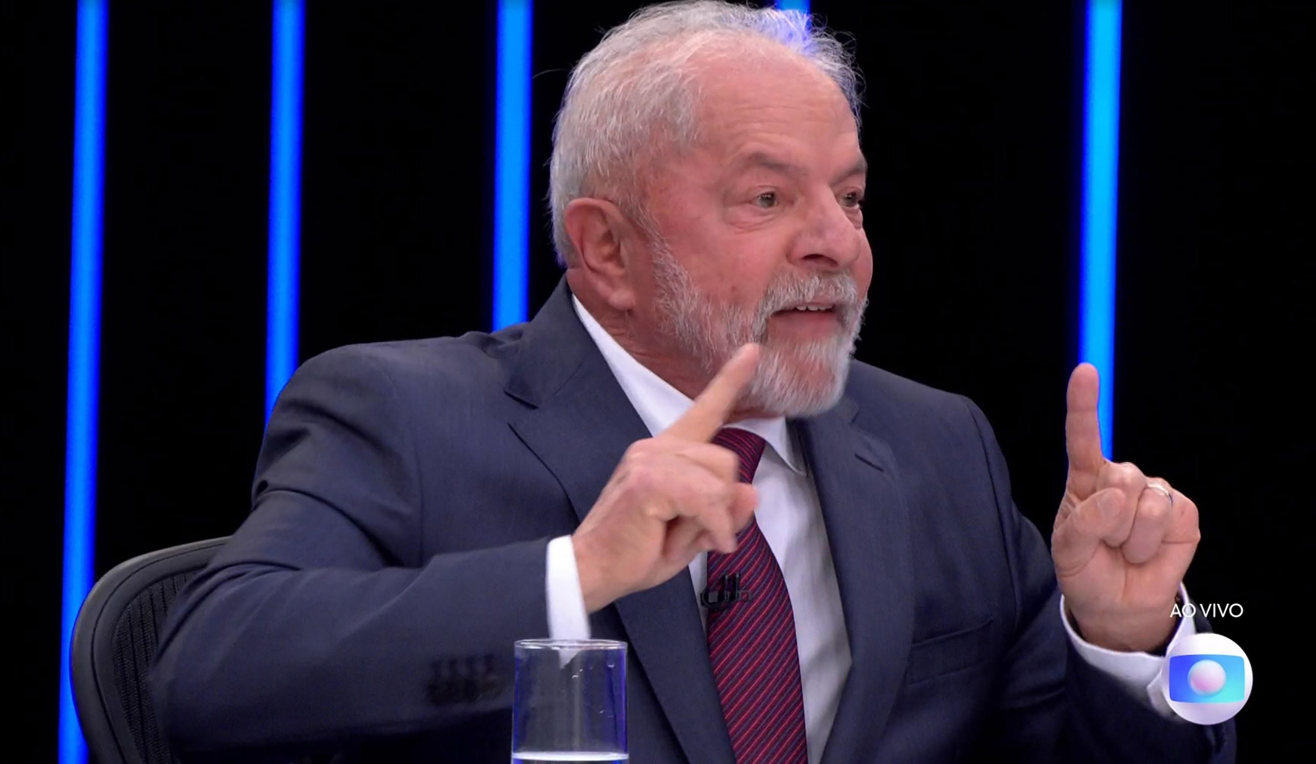 O candidato do PT à Presidência da República, Luiz Inácio Lula da Silva, durante entrevista no Jornal Nacional, da TV Globo, nesta quinta-feira (25)